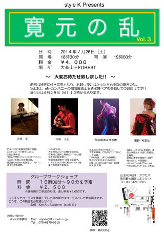 琉球ソウルエスニカ with Dr.Kunny Ramon & 田中詩織 SEVENTH ROSE with 藤本ゲン アキダス Jua ( GURI / KURENA ) 劇団学び舎 ことノ葉塾 |